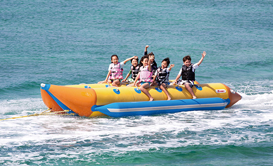 沖縄の青い海で思いっきり遊び尽くす人気のマリンスポーツを、割引価格にてご案内いたします。詳しくはスタッフにお尋ねください。