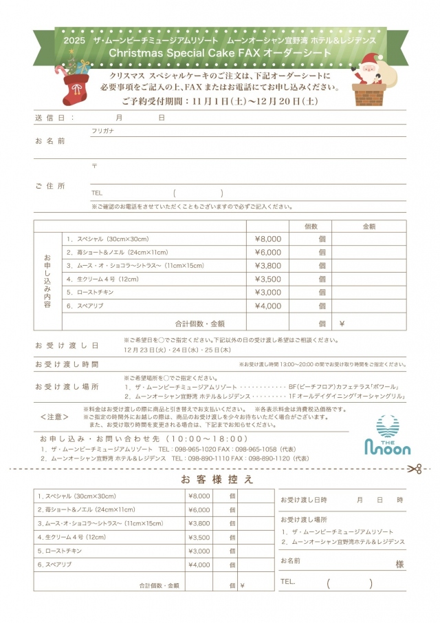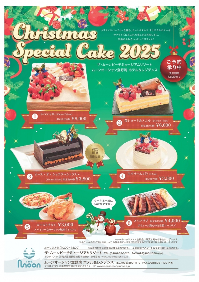 ザ・ムーンビーチミュージアムリゾートでは今年もXmasケーキの販売をスタート致しました!